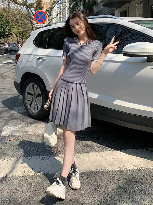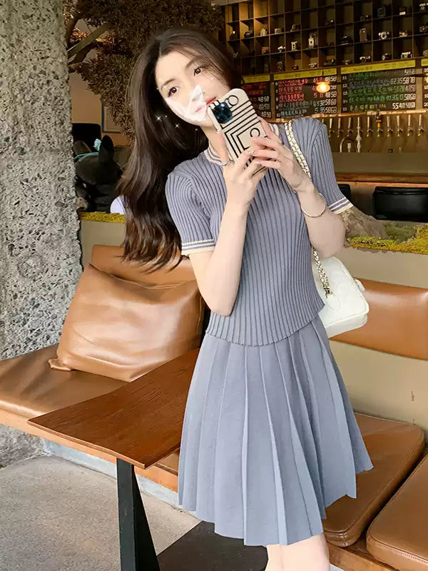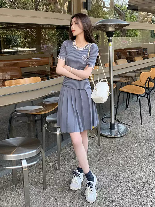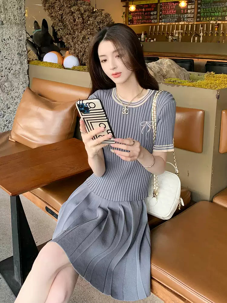 สีเทาชุดกระโปรงผู้หญิงฤดูร้อนเกาหลี