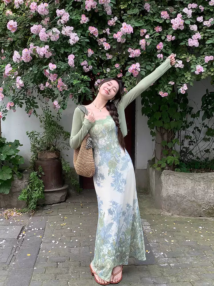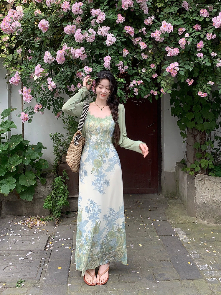 หญิงชุดกระโปรงวินเทจฤดูร้อนเสื้อกันหนาวแขวนคอ 2 ชิ้น