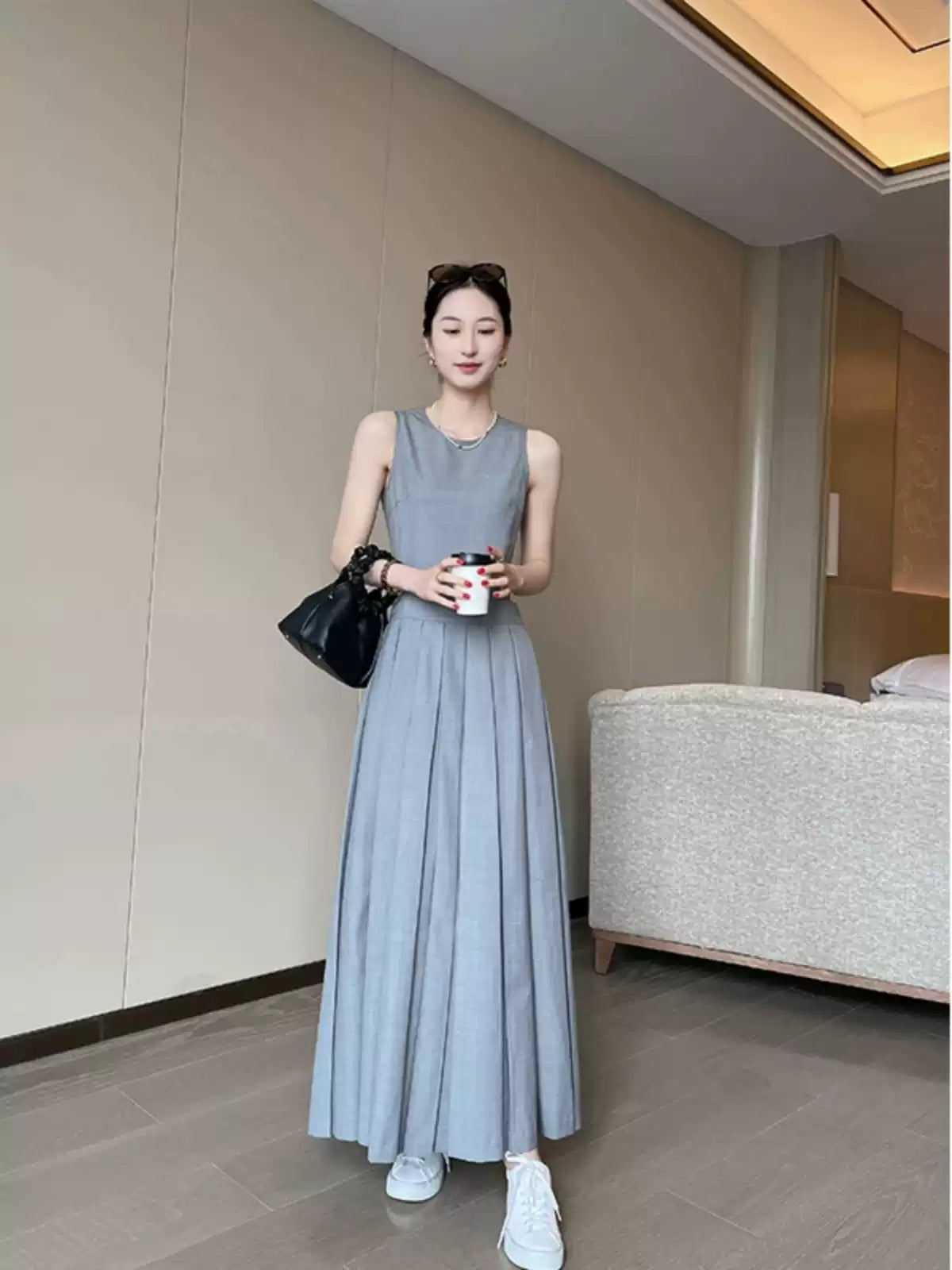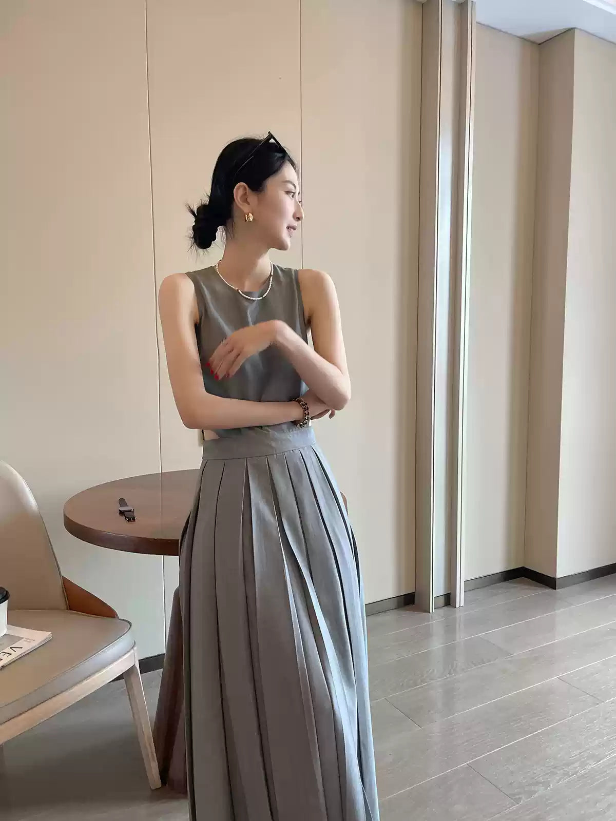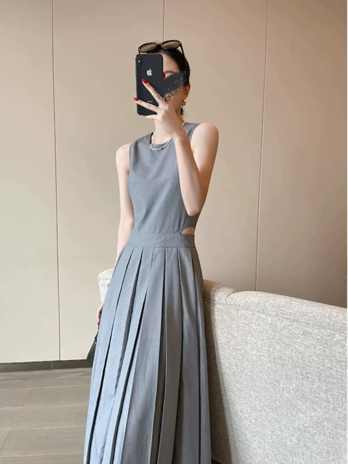 เสื้อแขนกุดสีเทาคัตเอาท์คัตเอาท์หญิงฤดูร้อน